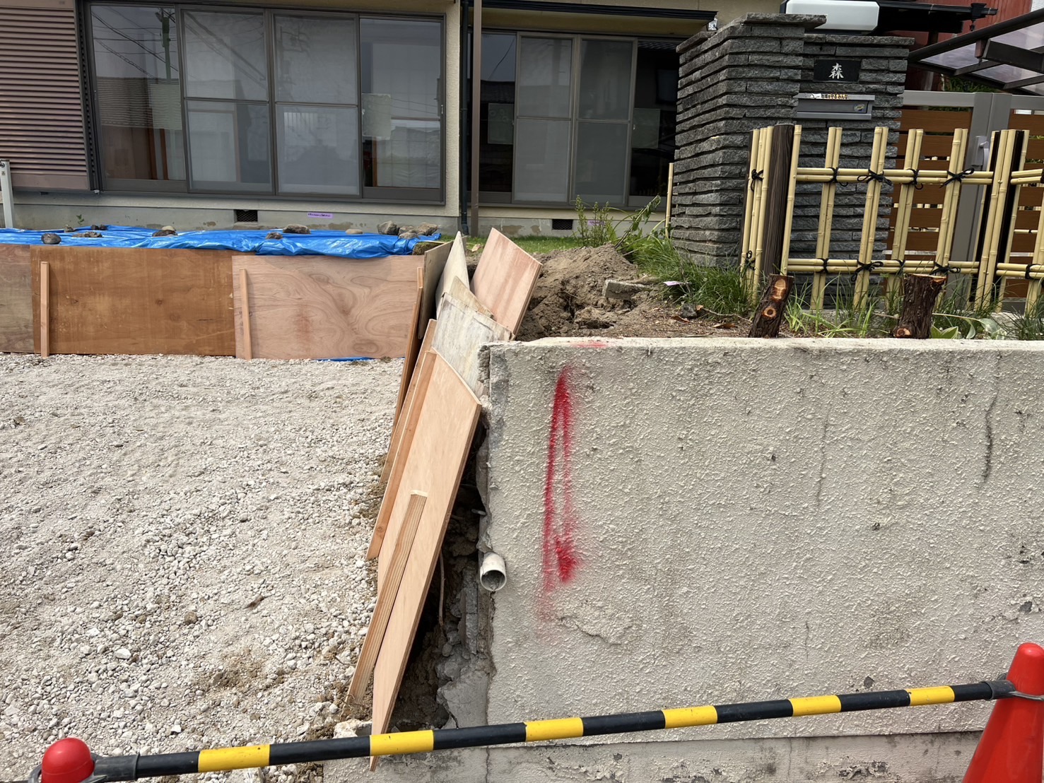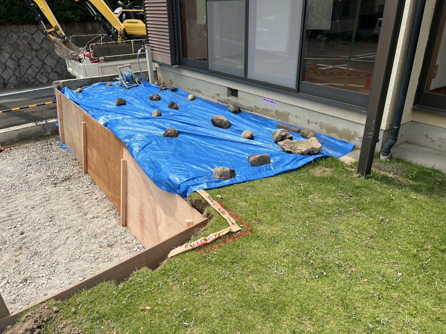 土留めのコンパネ、もう少しきれいにやってくれるといいんだが、目的は崩れないことなのでオッケーとしよう。