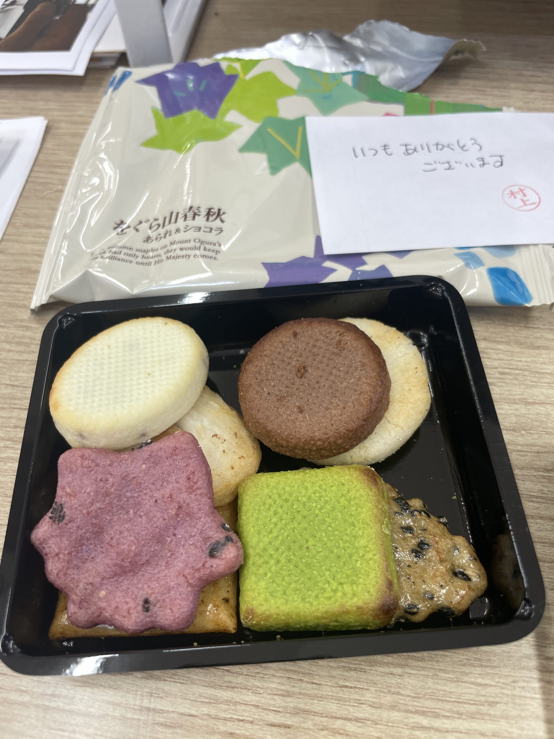 私はたまにコンビニの甘いものや山田餅の和菓子を差し入れしますが、小倉山荘の差し入れはこれからもないかも(笑)