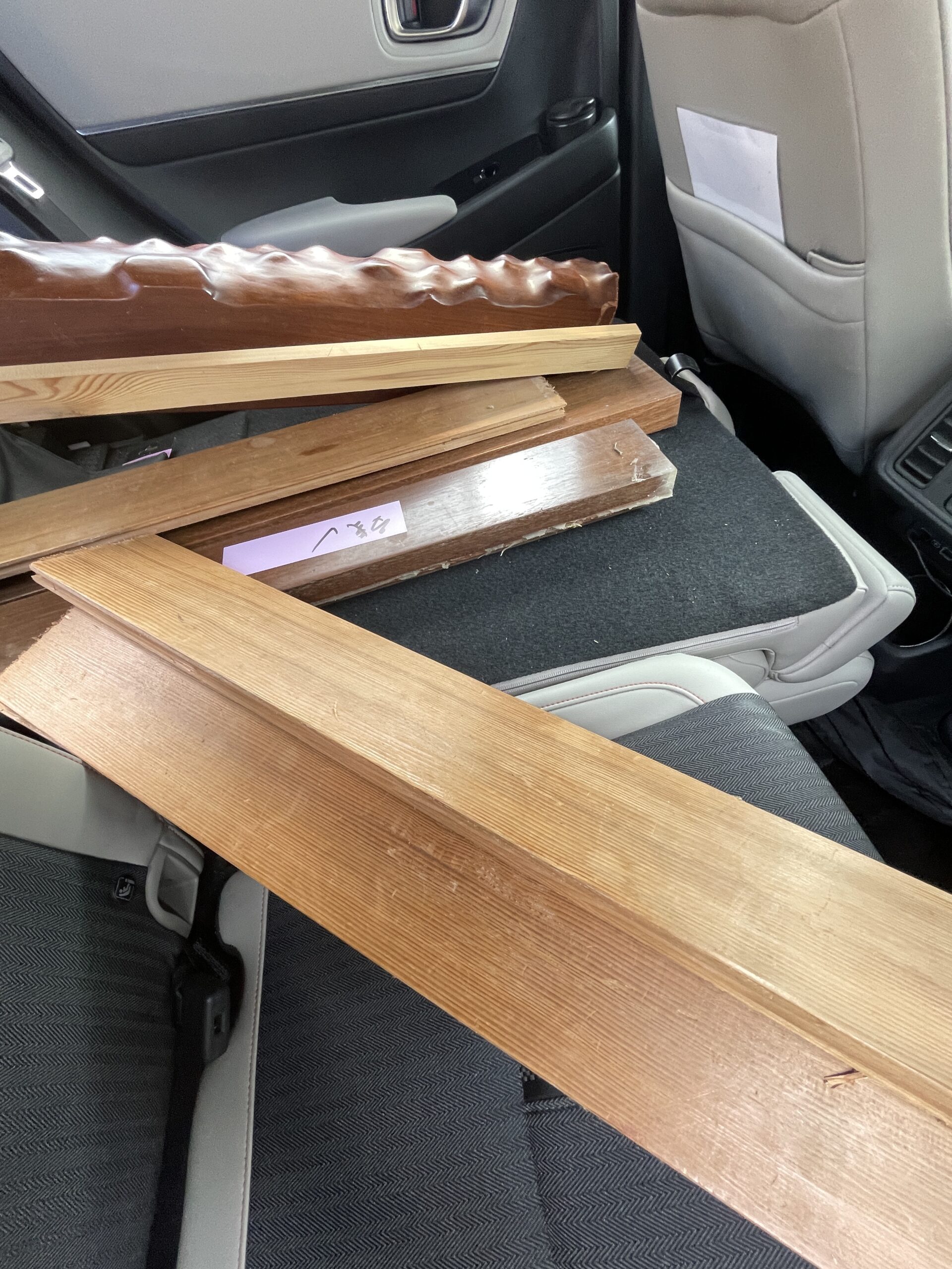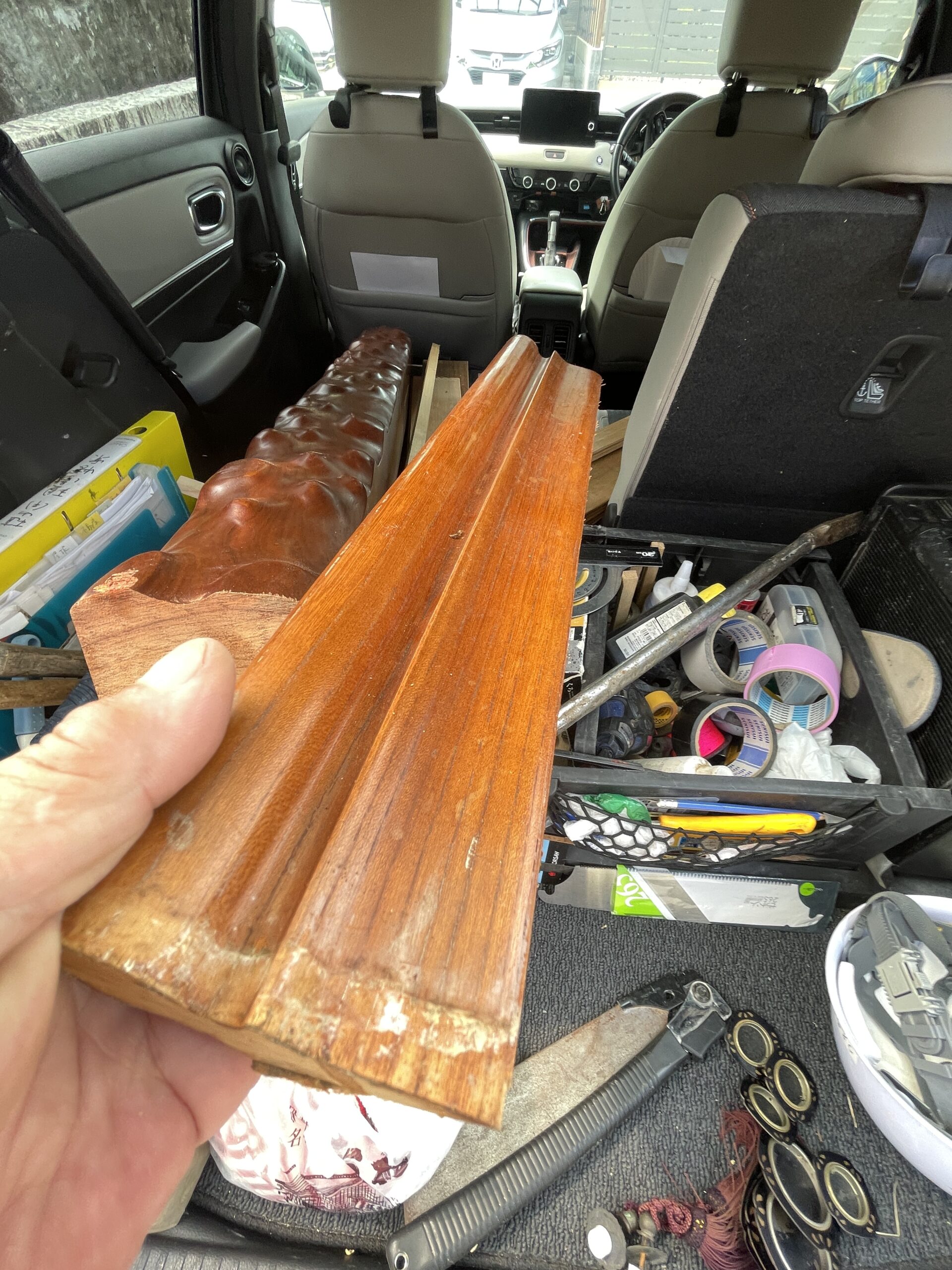 上の写真で残しと書いてある材は敷居にあったもの。洋桜。別名モアビ。硬い。削ると目と鼻が痛くなるので苦手だったけど、硬さは相当なもの。すごく重たいので気乾比重も高し。