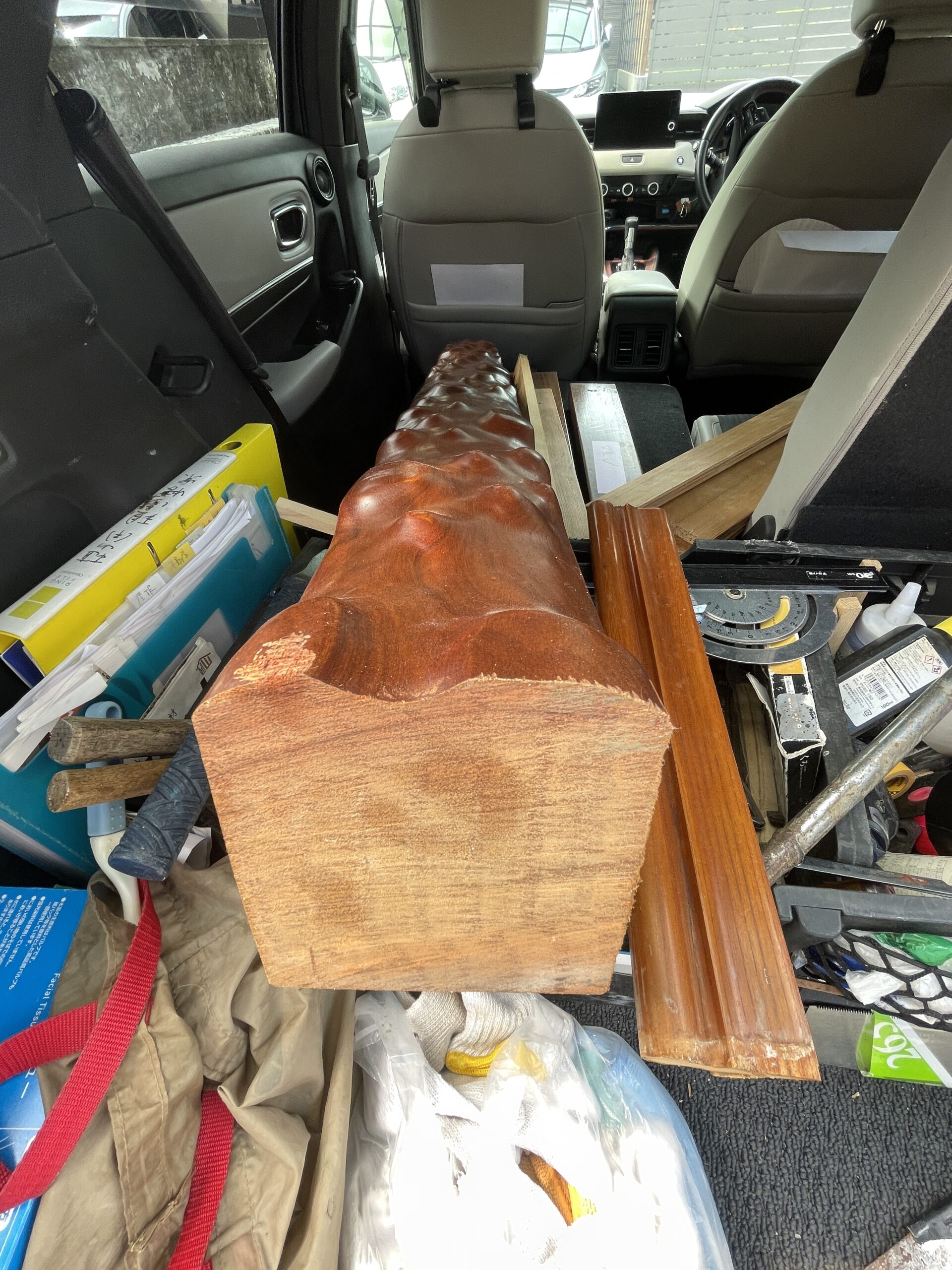 この手の床柱は貼りものが大半なのですが、これは無垢でとてつもなく重たくて難儀しました。