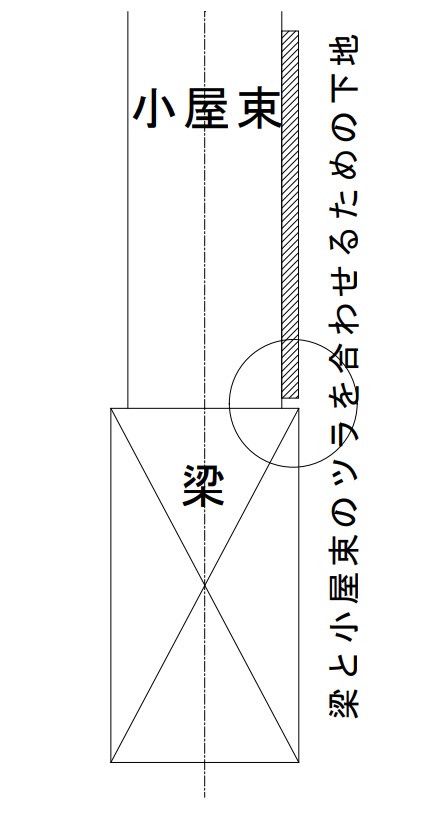 梁が巾120㎜で小屋束が巾105㎜だと芯で設置すると小屋束の両側は梁より7.5㎜へこんでいるわけです。